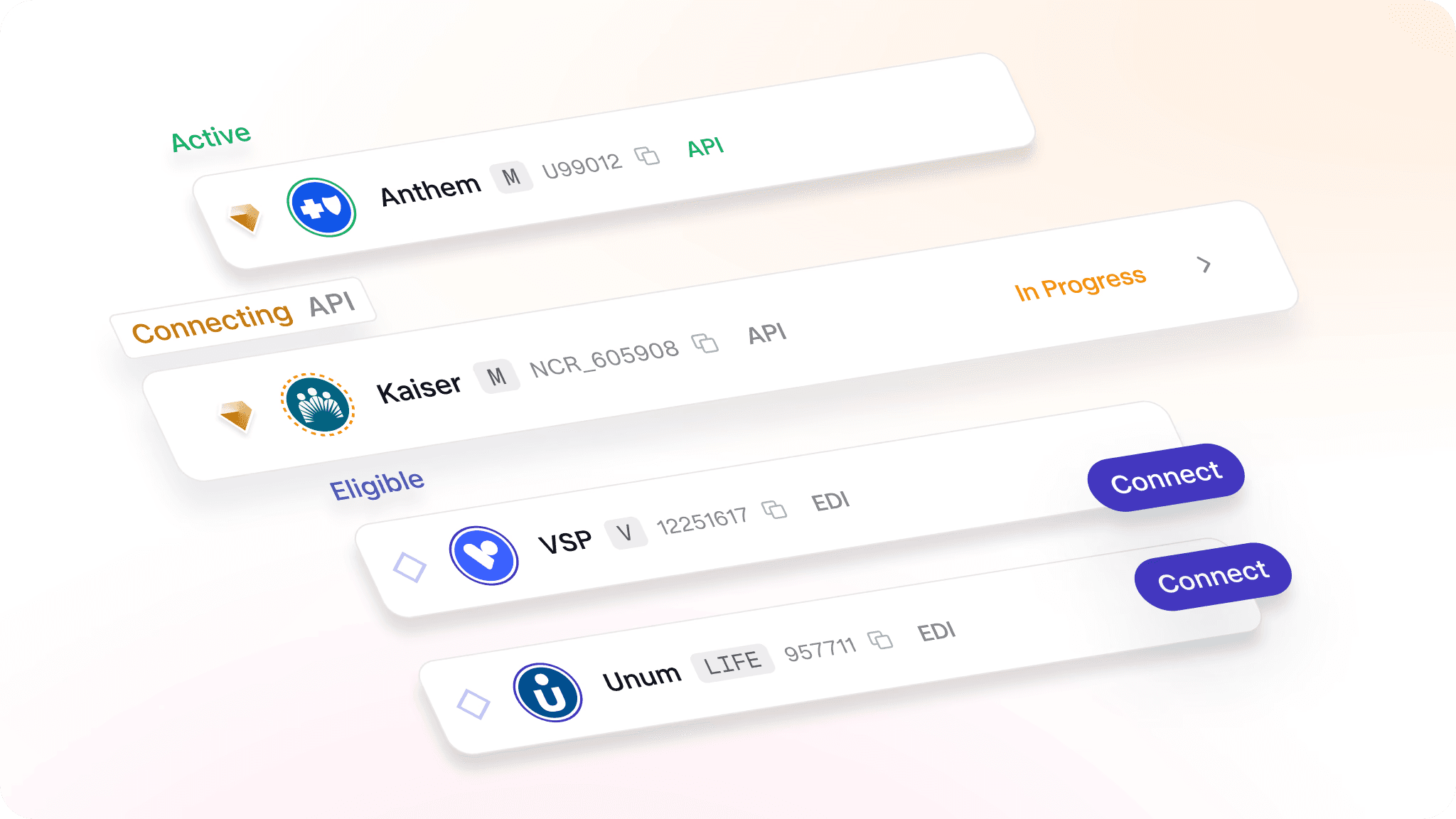 Intelligent Routing enables ben-admins to quickly connect new carriers without complex engineering work and eligibility logic. Our system supports multiple points of integration with a given carrier, recommends the best method of connectivity for each group (API, EDI, Other), and activates connections on-demand.Introducing Noyo Carrier Tiers